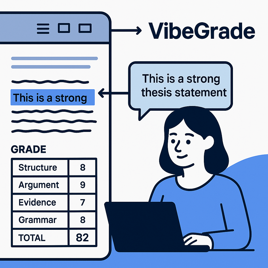 Traditional grading, especially when done under time constraints, often results in brief, non-specific comments that leave students unclear about how to improve. VibeGrade addresses this issue by enabling teachers to deliver in-depth, rubric-based feedback more consistently and efficiently.