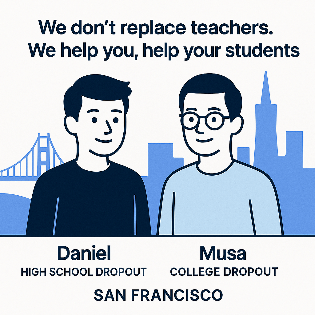 Daniel and Musa, the teenage dropouts who founded VibeGrade, bring an uncommon passion to their mission. Daniel left high school and Musa left college, both driven by the conviction that they could build something impactful.