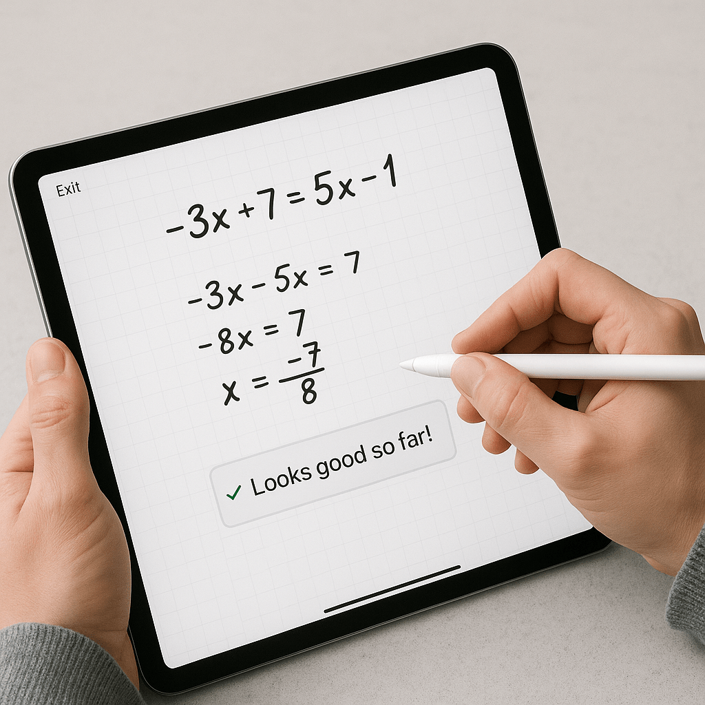 The iPad provides an ideal medium for free-form handwritten math. Unlike typing equations into a calculator or desktop tool, writing on an iPad closely mirrors the real-world classroom or tutoring experience. It’s intuitive, tactile, and removes the friction that often comes with less natural interfaces.